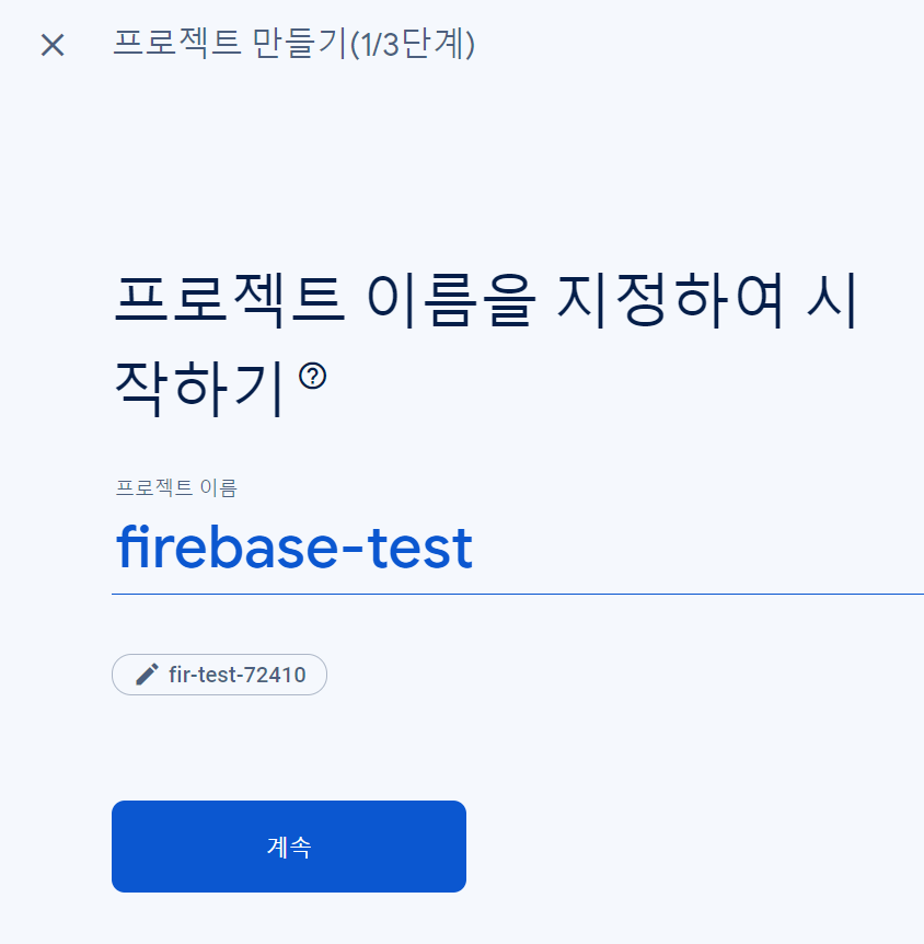 2. 프로젝트 추가 - 프로젝트 이름 지정 - 애널리틱스 미사용 클릭 - 프로젝트 만들기