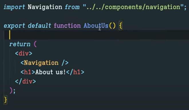 next JS는 layout 컴포넌트 렌더링 함, URL 확인 => abou 컴포넌트를 렌더링 해야하는 것을 인식함