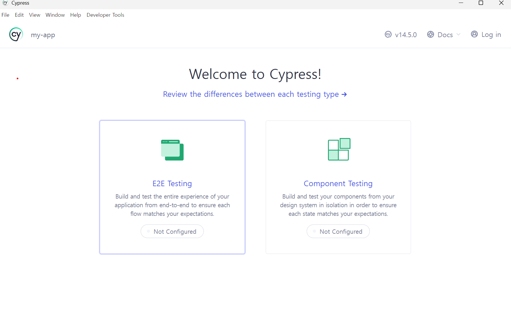 5. cypress 실행 + E2E Testing 선택 + chrome 선택
